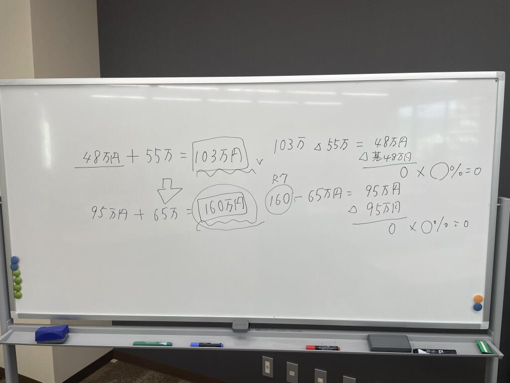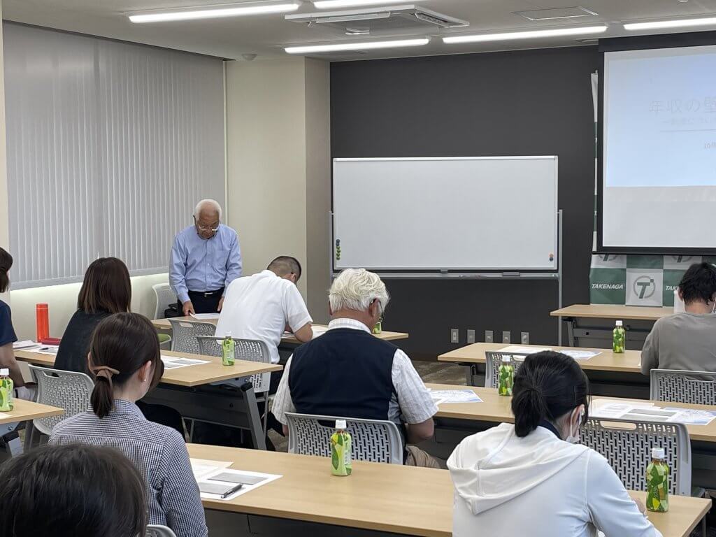 税理士 竹長妙・社労士 竹長操の2名が講師に立ち、税務と社会保険それぞれの視点から見た”~の壁”について資料及びホワイトボードを活用しながらのセミナーになりました。