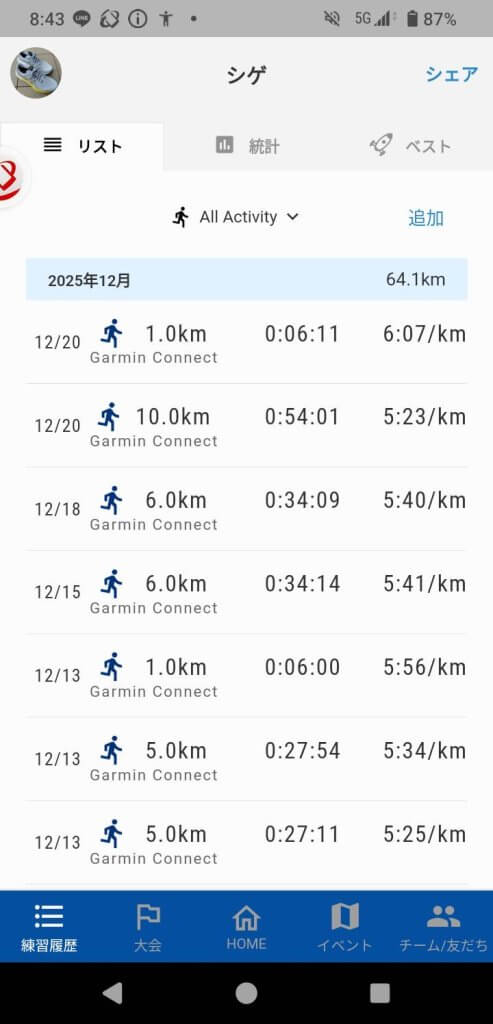 晴れ間を見計らってのランで、なかなか走行距離は伸びず…