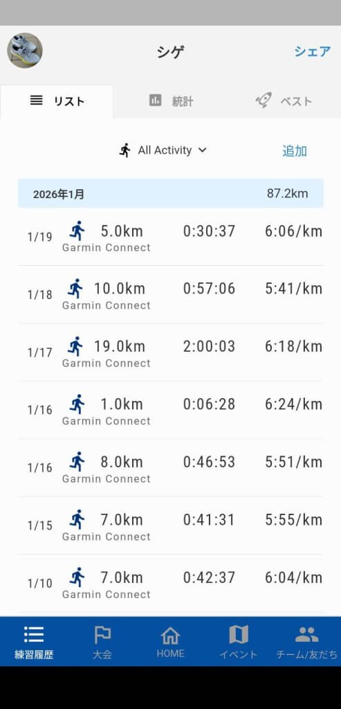 早々に1/19で月間ランは終了と相成りまして、