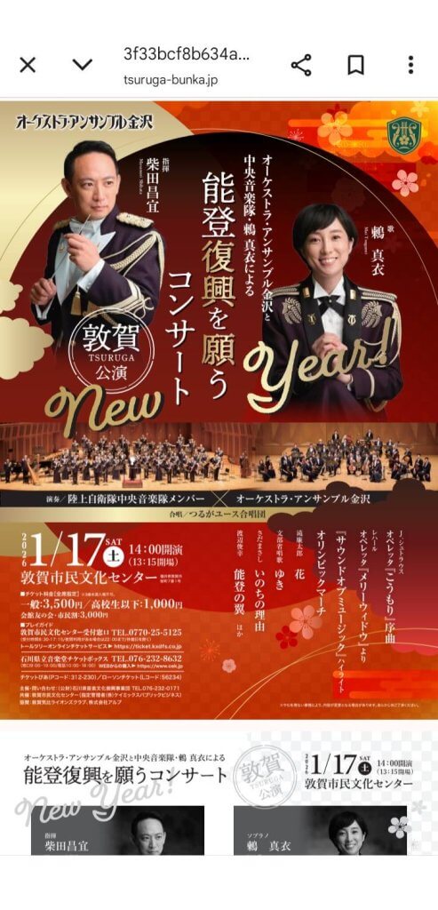 敦賀市民文化センターに妻と義母と3人でコンサートへ